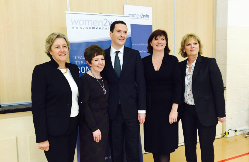 At a Meeting of Women 2 Win organised by Broxtowe MP Anna Soubry and held at The Pearson Centre Beeston about 100 Conservative Ladies listened to Speeches by George Osborne MP and Chancellor of the Exchequer, Nicky Morgan MP and Minister of Education and Minister for Women and Baroness Stowell of Beeston, Leader of the House of Lords.